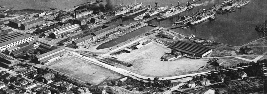 Banner Image: View of the U.S. Puget Sound Navy Yard, Bremerton, Washington (USA), in September 1924. Two battleships are visible, a Colorado-class ship, left, and a Tennessee-class ship. Six flush-deck destroyers are also identifaiable.