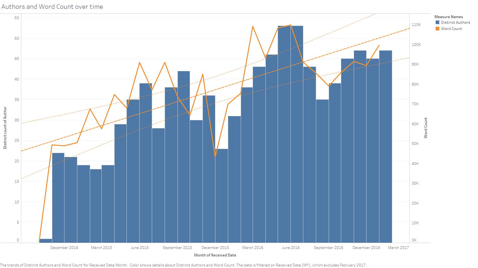 When we started in 2014, 30% of the submissions came from the five members of the editing team. In 2016 we contributed fewer than 5% and so far in 2017 we’re down close to 2%.