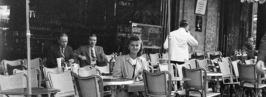 Three women chattering happily in French passed beside my table, ignoring me completely. A young woman–possibly a fashion model–hailed a taxi with one lovely arm while holding onto her feathered cloche with the other, and was subsequently ferried away in a puff of black exhaust. An elderly woman scolded her tiny poodle who was inspecting the leg of the next table. Then she picked him up and carried him, making soothing baby talk to the obliviously happy canine. I saw them all and yet I forgot them the instant they were seen.