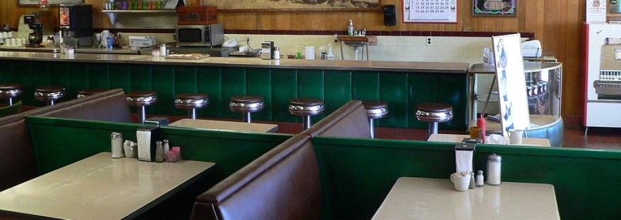 If I ever get sent to the electric chair, I know what I’d want my last meal to be: a Woolworth’s hamburger, fries and a fountain coke poured on shaved ice. Since the booths were occupied by church-goers (aka, “Christers”), we sat at the counter like proper little ladies and did our best not to eat like swine. Removing the wrapper off the straw at Woolworth’s used to be one of my life’s greater small joys. There was a routine that I followed and never deviated from: first I’d tear off the paper at one end, blow gently into the opening–as only to move the paper half-way down the candy-striped straw, mind you–and then I’d remove the wrapper and roll it up into a little ball. Looking back, I guess “life’s greater small joys” sounds contradictory; but I have no better phrase handy. I used to feel the same joy about October fog; the way a cat will settle in behind your knees and bathe herself as you lie in bed; checking books out from the library, and the smell of new shoes. The little losses add up to something big. I’m not one who would want to relive a big-ticket moment in my past; I’d settle for five minutes’ worth of seeing the world the way I used to see it.