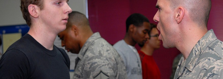 “You, assholes, are too dumb to be in my fuckin’ Air Force! On the floor and give me ten pushups on my mark and count them off like this, ‘One pushup, Sir, Two pushups, Sir’ as loud as you girls can. Go!”