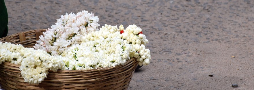 She remembered the jasmine garlands that the servants fetched from the market in large baskets. Small, white jasmine buds stacked in long coils. White serpents, fragrant reptiles…
