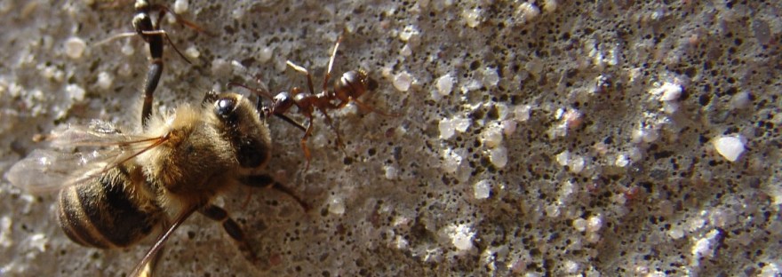 You mute the TV. You use the Get Up & Go cane to get up and go to the kitchen for a snack. Don’t forget the ant spray, Joe. The ants are decapitating a bee that has lost its way and died on your living room floor—a trail winds from bee to wall.