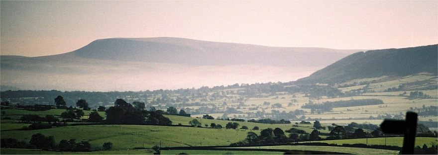 Banner Image: Pendle Hill, in Lancashire, England. To the right is the east end of Longridge Fell. Mist lies in the Ribble valley between them. Photographed from Beacon Fell. Wikicommons – Dr Greg