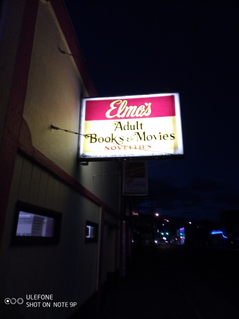 (Coincidentally, Elmo’s Adult Books and Novelties has stood about a mile from here for almost seventy years. It too advertises string pulling and tickling, and also sells dolls to the lonely.)
