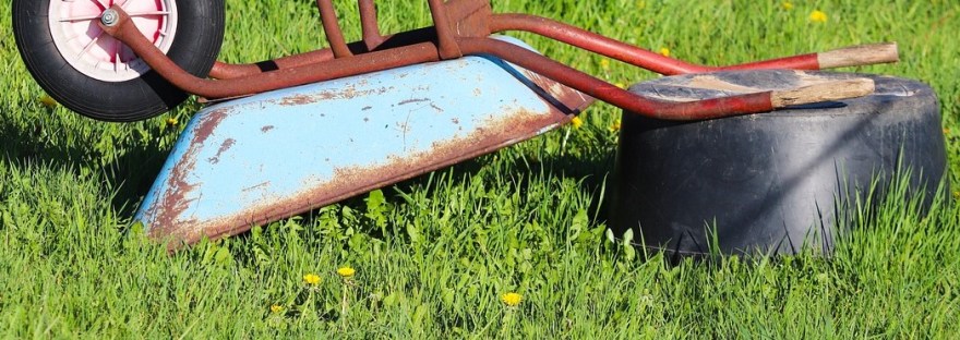 Image by Manfred Richter from Pixabay – a blue wheelbarrow turned onto it’s front.