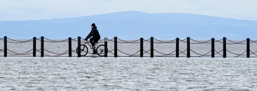 Image by Tim Lutton from Pixabay – a person bicycling beside the sea.