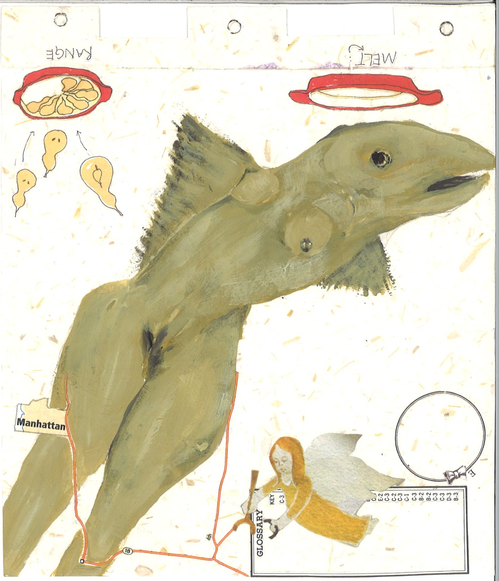 about my art generally: i use acrylic paints on paper that i usually find in thrift stores, and collage material that i find in magazines or discarded children’s books or that people give me. (i had long runs with cancelled postage stamps and cigar bands.) i paint ideas about the energies of the cosmos that usually include something recognizable and representative from nature.