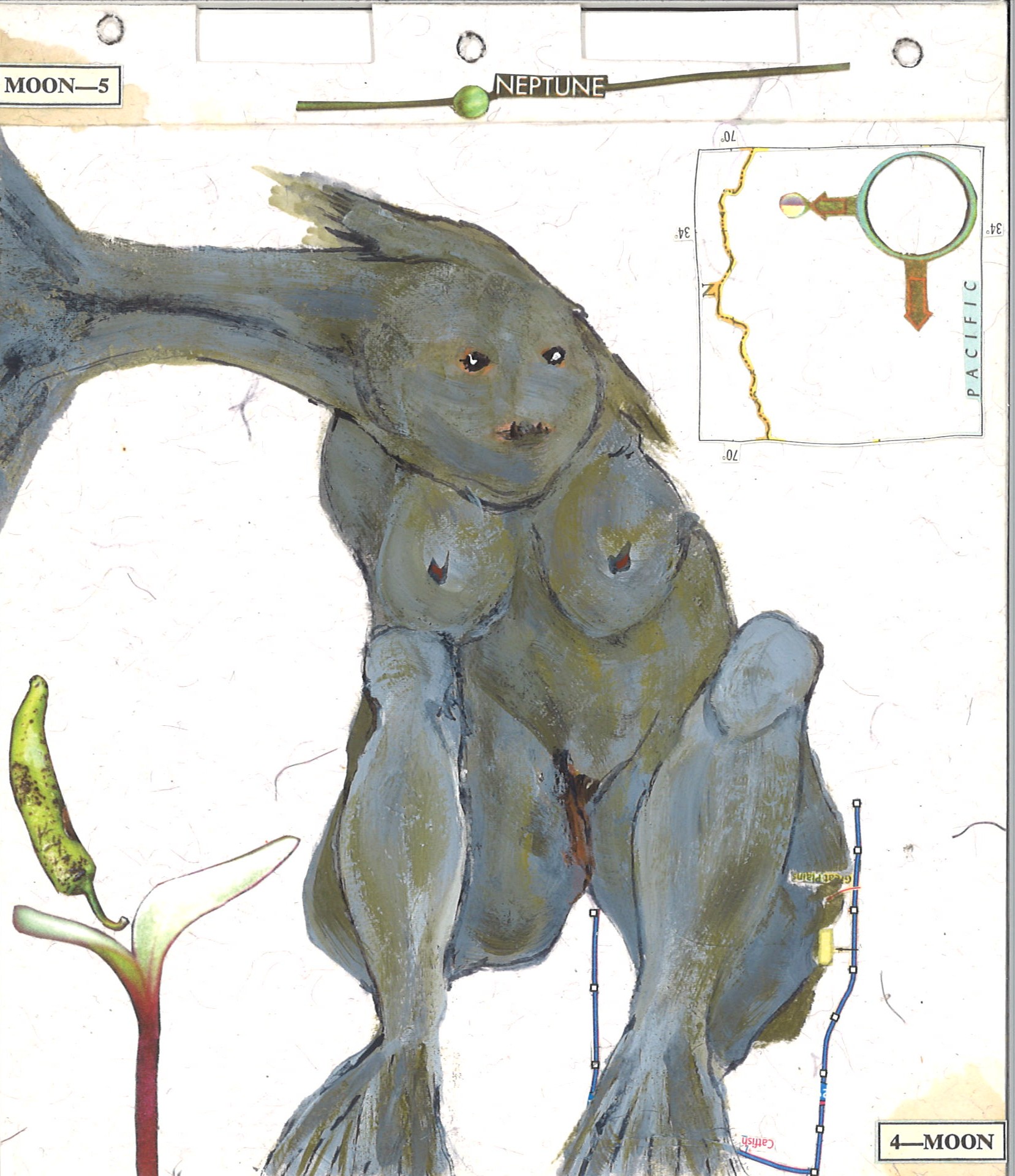 water beings: i’m a student of the ageless wisdom teachings that indicate that at other times in the evolution of the cosmos, humanity took other forms, as crocodiles, for instance. i was thinking about this and wondering about who might exist in ocean depths not yet explored or on unknown celestial bodies, and recalled the water sprites of egon schiele and gustav klimt, artists who were contemporaries and friends and whose work most stimulates me. this led me to create a small group of paintings of who i call water beings: entities with fish heads and limbs, and female bodies of the sort we’re currently accustomed to.