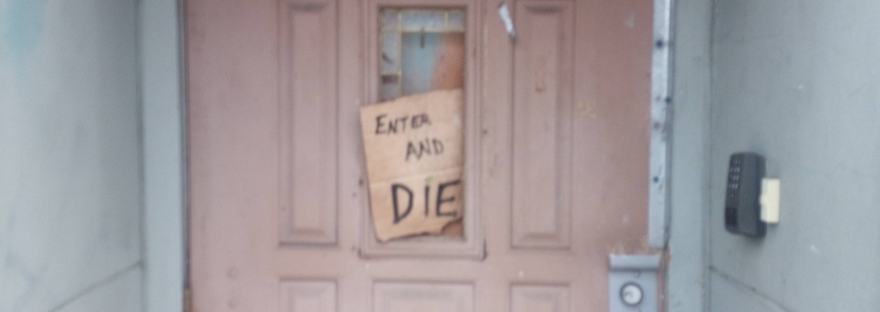 Lately I’ve been torn between my affection for the past and my reluctant acknowledgement of necessary progress. The remember when has a narcotic quality that gives even the crummiest situations a warmth that they did not possess when happening. I’ve been examining this peculiar human trait and so far I haven’t a clue why so many mundane and even bad objects and actions can gain nostalgic gloss after so many years have gone by. For example, behold the words on a handmade wood sign I saw everyday on my way to and from school. It hails from the Good Old Days and was nailed to a tree in front of a property that most people crossed the street to avoid: