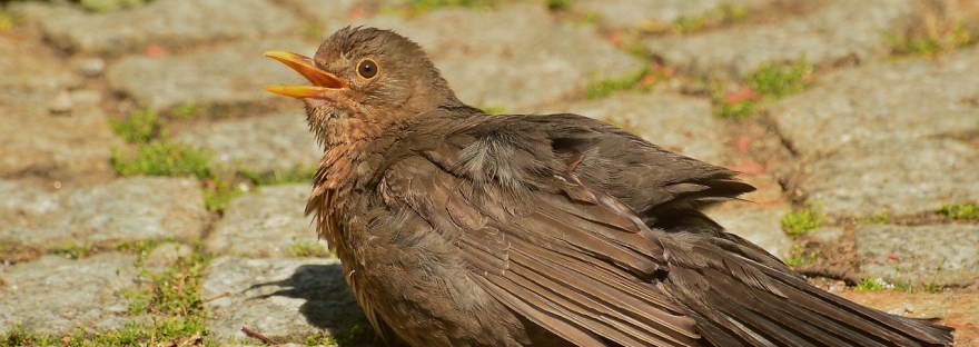 Image by Miroslaw Kolaczynski from Pixabay – a baby blackbird with scrappy feathers and not yet the proper colour.